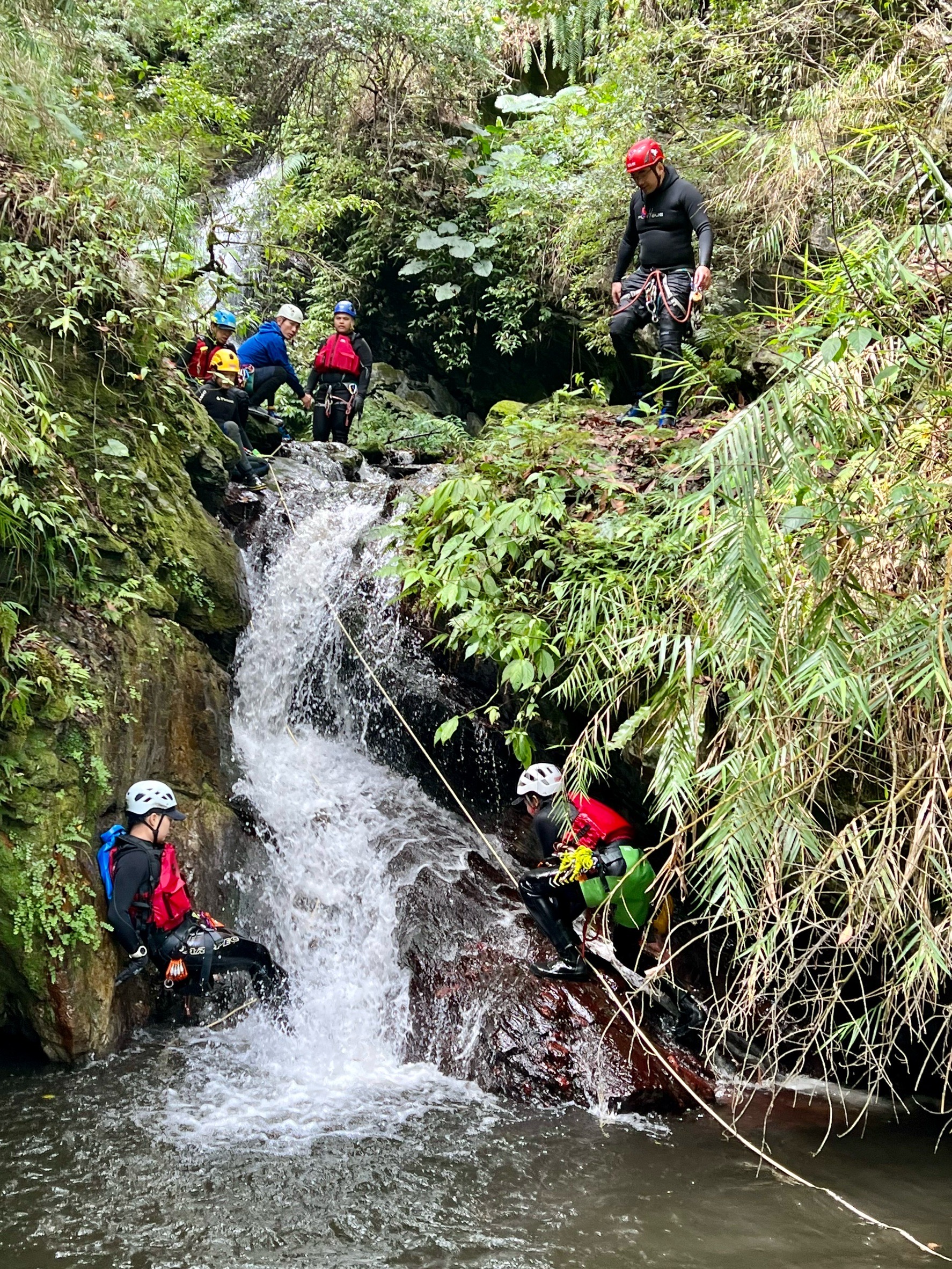2023年4月1、2日,本週東搜搜救員訓練營第一期課程為溯溪裝備及技術運用,操作溪谷垂降、互助攀瀑、使用岩釘岩楔、急流橫渡、防衛式以及確保姿勢漂流。